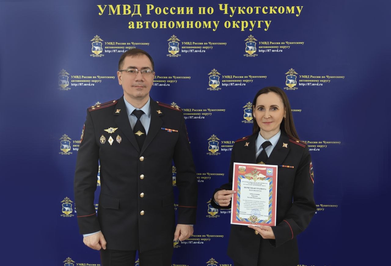По итогам первого квартала текущего года начальник УМВД России по Чукотскому автономному округу Иван Аникин провёл церемонию награждения сотрудников органов внутренних дел. За добросовестное исполнение служебных обязанностей, профессиональное мастерство, преданность своему делу и достигнутые успехи в оперативнослужебной деятельности ряд сотрудников получил ведомственные награды и почётные грамоты.