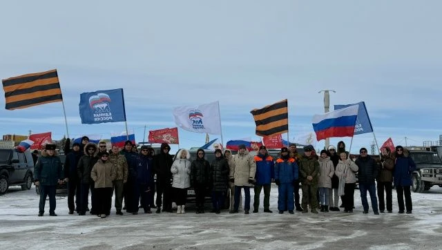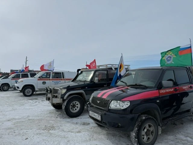 Колонна из 17 автомобилей проехала по ледовой переправе между Анадырем и поселком Угольные Копи. Участники автопробега украсили свои транспортные средства государственной символикой и флагами Российской Федерации.