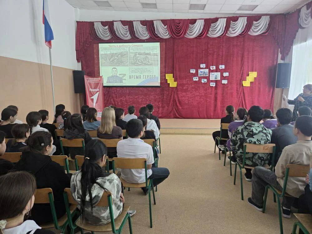 В центре образования села Лаврентия для учеников 5-8 классов прошел Урок мужества, во время которого учитель истории и обществознания Кира Юрьевна Ахпашева рассказала о подвигах героев СВО по новеллам нового сборника общества "Знание".