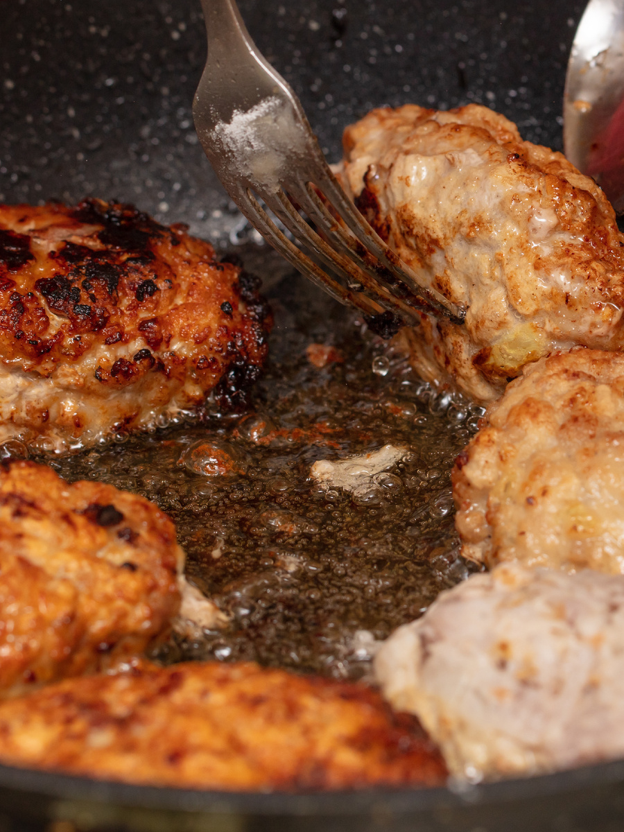 - Правильная температура масла: Перед тем как укладывать котлеты, масло должно хорошо разогреться. Оптимально — до 180 градусов. Это позволит создать корочку, которая предотвратит прилипание.