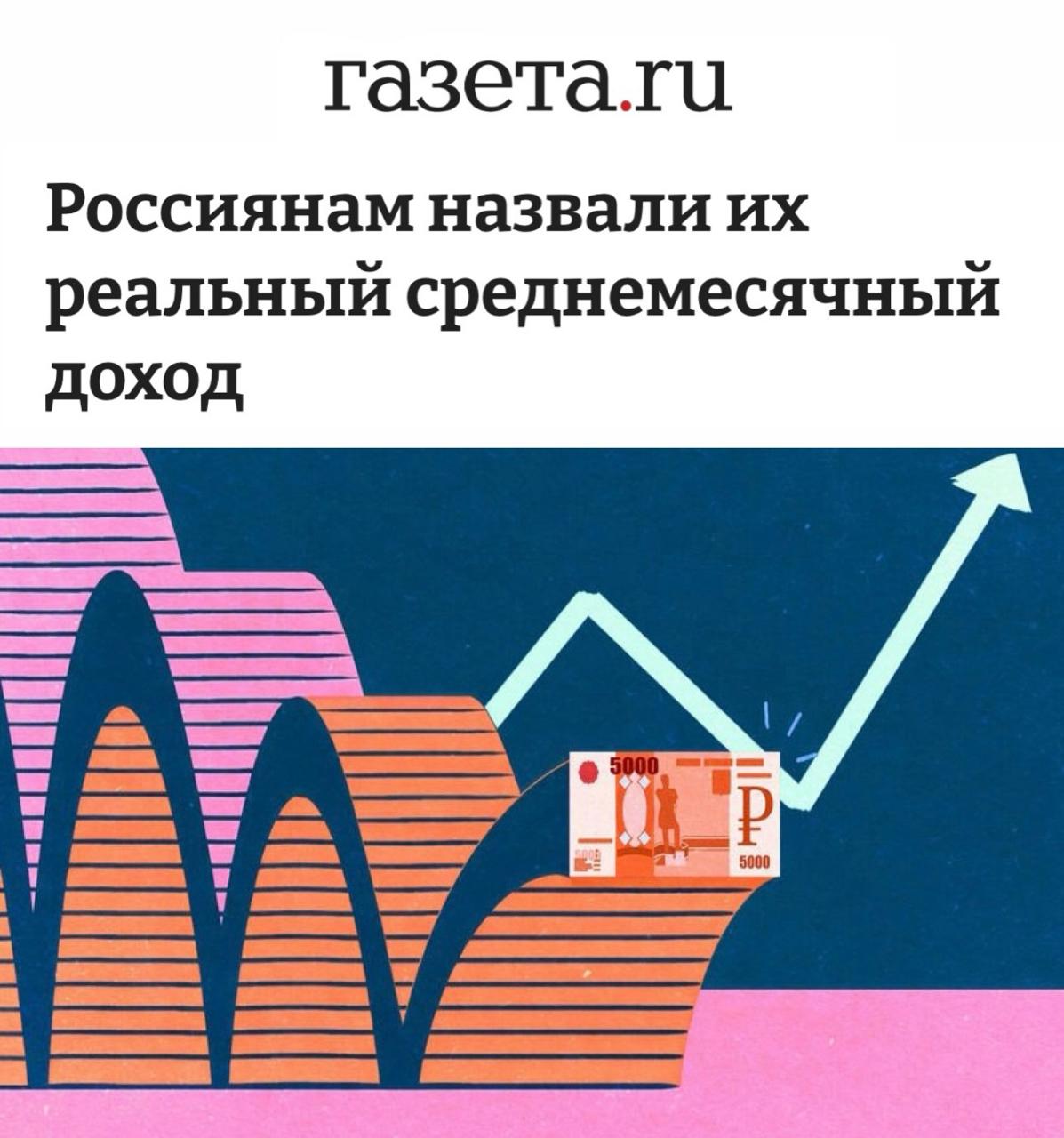 «Россиянам назвали их реальный среднемесячный доход»: Россияне зарабатывают в среднем 75 тыс руб в месяц.